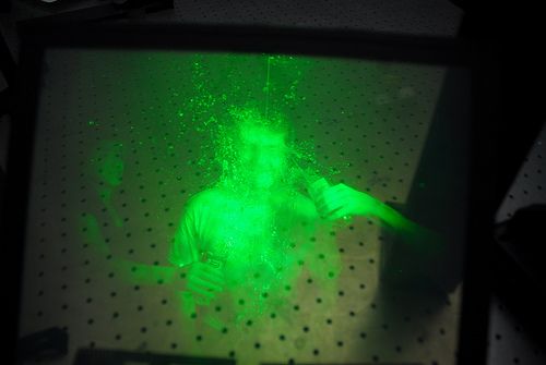 يتم استخدام الليزر فى صناعته بشكل متدفق وسريع وقوى لتسجيل الشكل المراد تصويره فى بضعة نانو ثانية فهو قريب الشبه بفلاش الكاميرا .